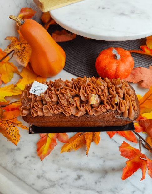 Cake très moelleux avec un cœur de crème de marrons (contient du rhum). Le dessus du cake est recouvert de crème de marrons, pour encore plus de gourmandise !